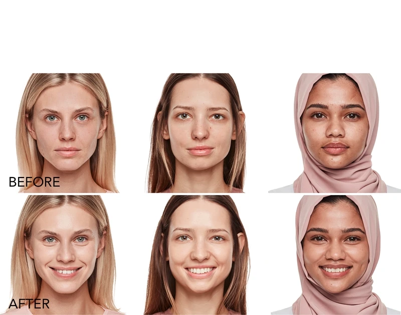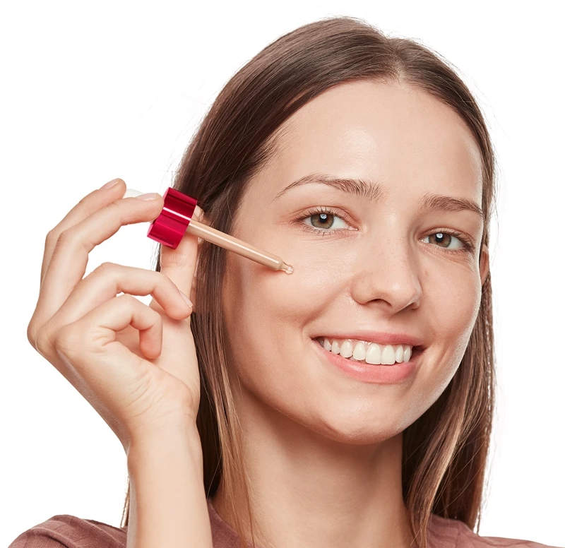 Appliquez une petite quantité dans la paume de la main à l’aide du compte-gouttes. Étalez délicatement du centre du visage vers l’extérieur.