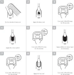 Appliquez le vernis de base en gel NOBEA UV & LED sur un ongle propre et dégraissé et terminez l’application en utilisant une lampe UV/LED. Faites sécher le vernis dans une lampe LED pendant 30 secondes, dans une lampe UV pendant 2 minutes ou 30 secondes dans la lampe NOBEA UV & LED. Appliquez ensuite un vernis de couleur.