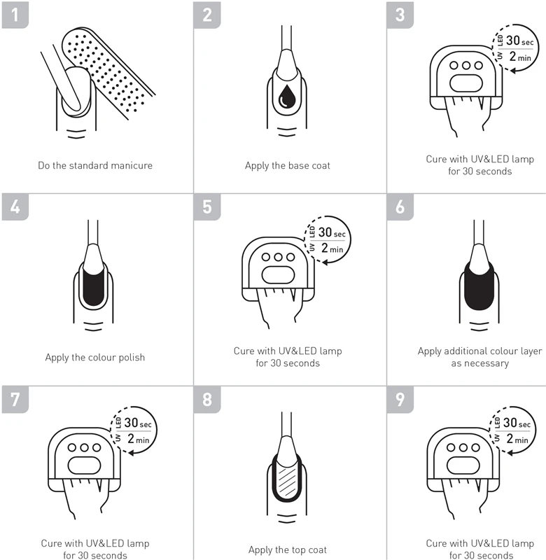 - couche finale («top coat») après l’application d’un vernis gel coloré