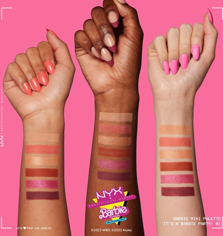 Pour tous les fans de couleur rose, de la poupée la plus connue au monde et du film Barbie, la mini-palette de fards à paupières NYX Professional Makeup BARBIE On The Go est exactement ce qu’il vous faut. Vous y trouverez 6 magnifiques teintes pigmentées au fini mat ou pailleté, qui vous permettront de créer une infinité de looks très variés. Les différentes teintes s’associent parfaitement, résistent dans le temps et assurent un beau rendu lorsqu’elles sont associées au brillant à lèvres qui est fourni avec.